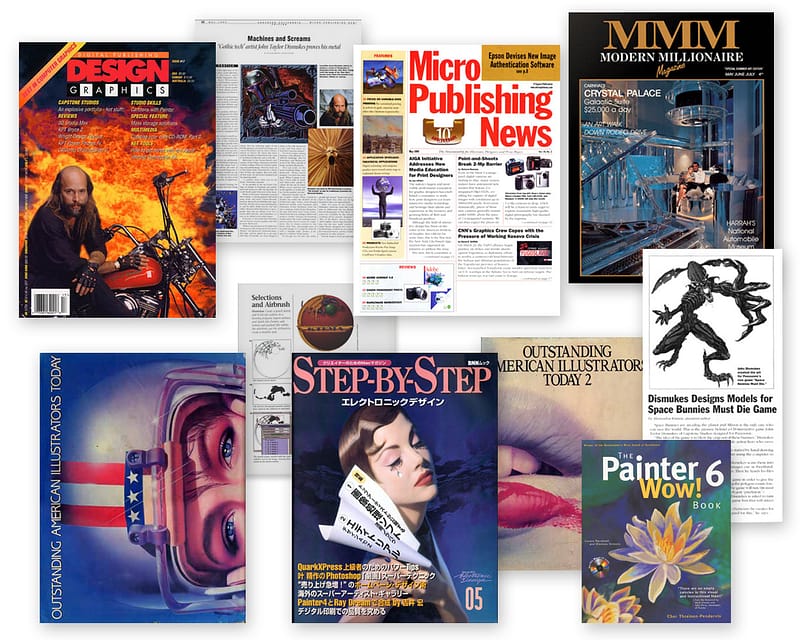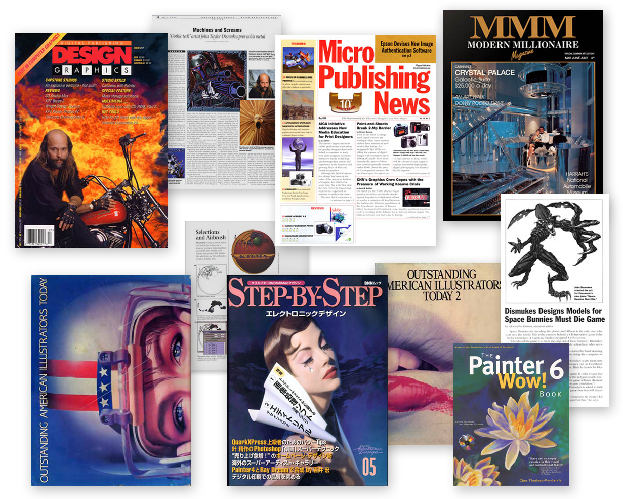 Explore our archive of magazine, newspaper and book articles featuring art and interviews by our Creative Director, John Taylor Dismukes. As an innovator and pioneer in digital illustration and imaging techniques, John has been the subject of numerous interviews by trade magazines and industry media, as well as a featured contributor to many instructional books.