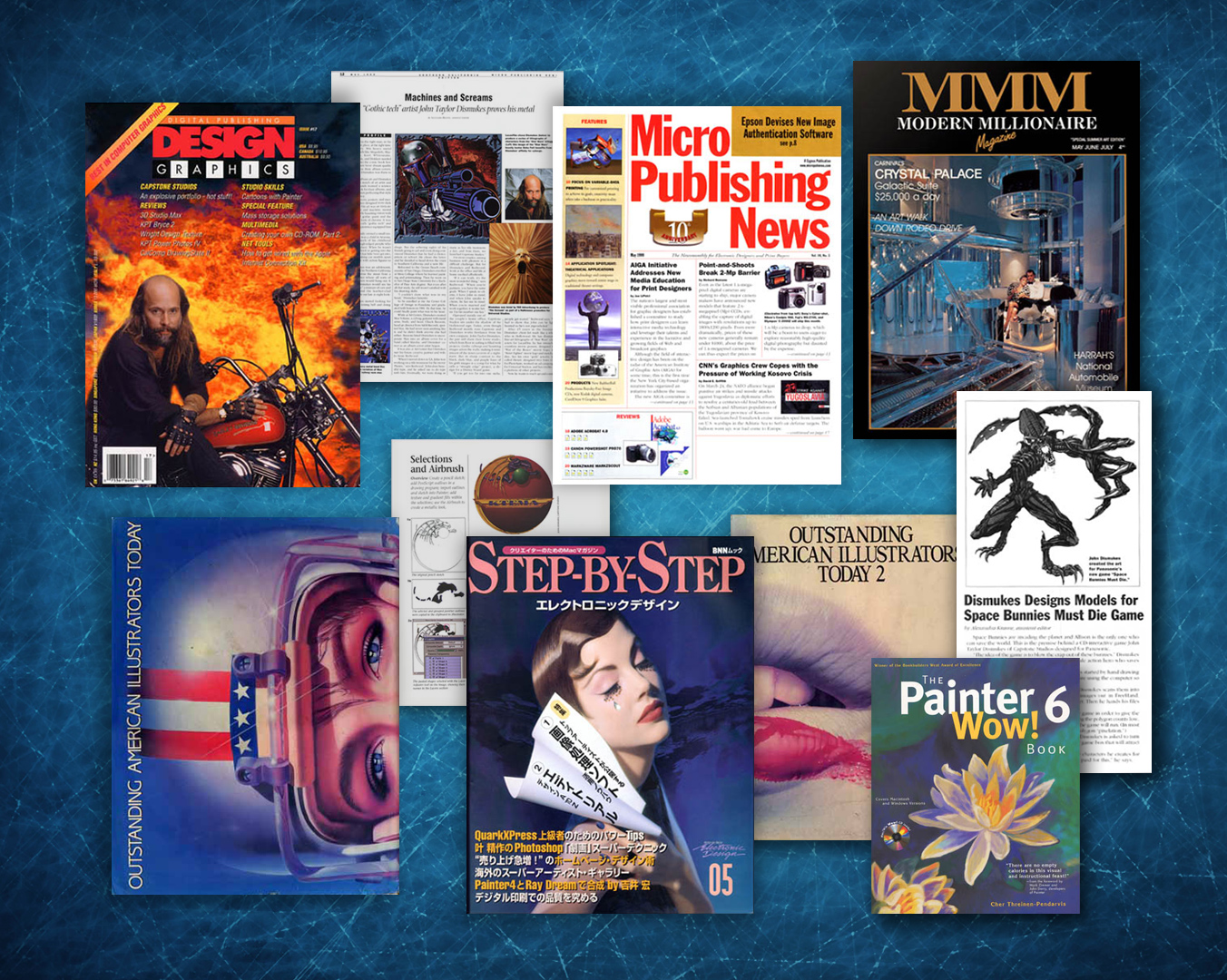 Explore our archive of magazine, newspaper and book articles featuring art and interviews by our Creative Director, John Taylor Dismukes. As an innovator and pioneer in digital illustration and imaging techniques, John has been the subject of numerous interviews by trade magazines and industry media, as well as a featured contributor to many instructional books.